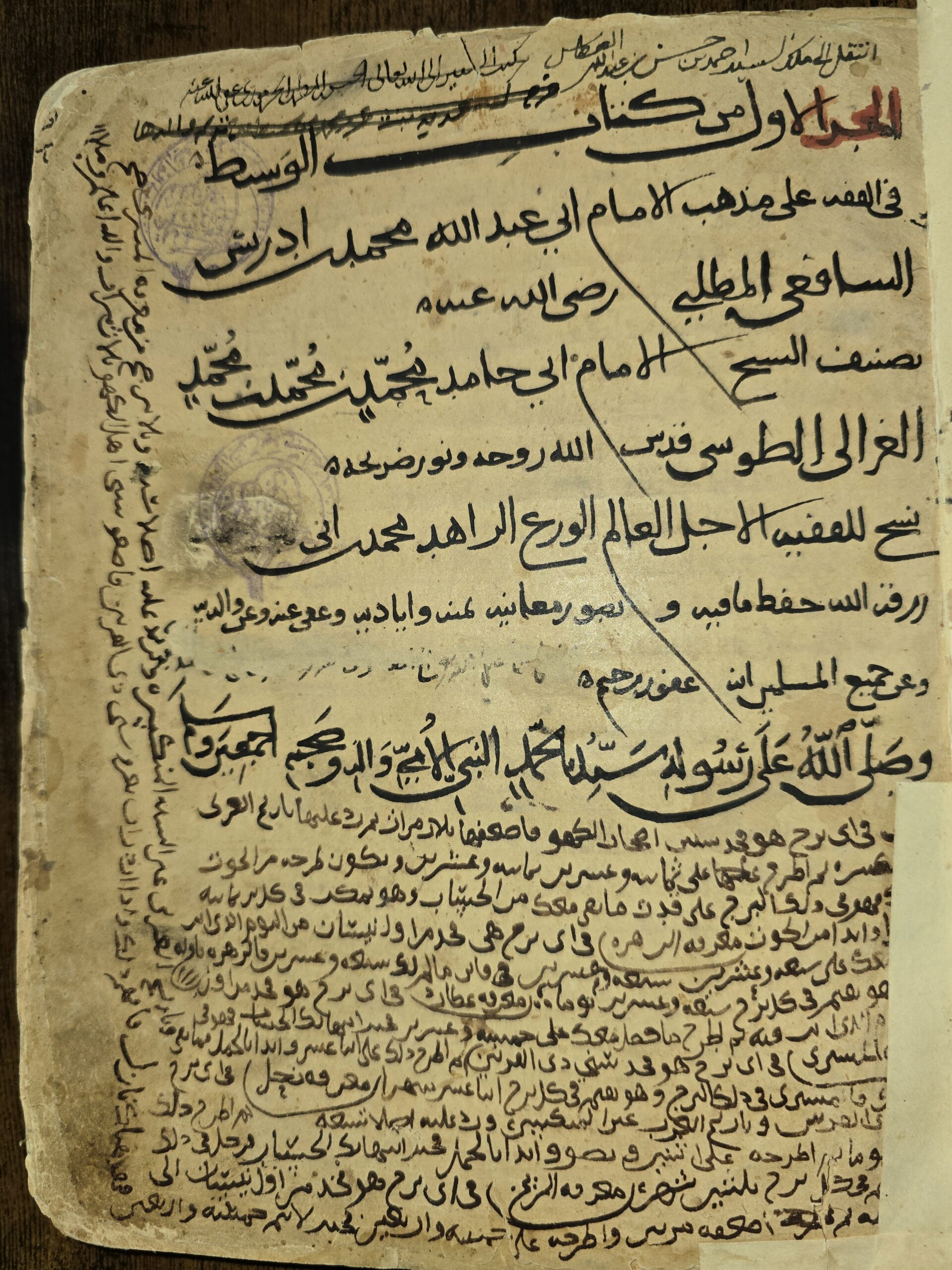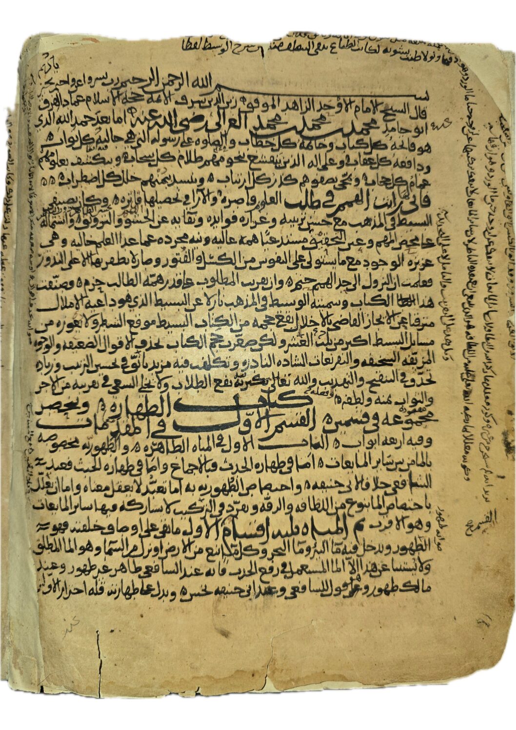 المخطوط هو الجزء الأول من كتاب الوسيط في الفقه الشافعي للإمام حجة الإسلام أبي حامد محمد بن محمد الغزالي المتوفى سنة 505هـ.