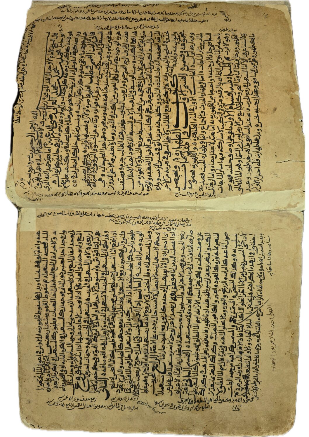 هوامش كثيفة في بعض الصفحات تشير إلى قراءة ومحاكمة نصية