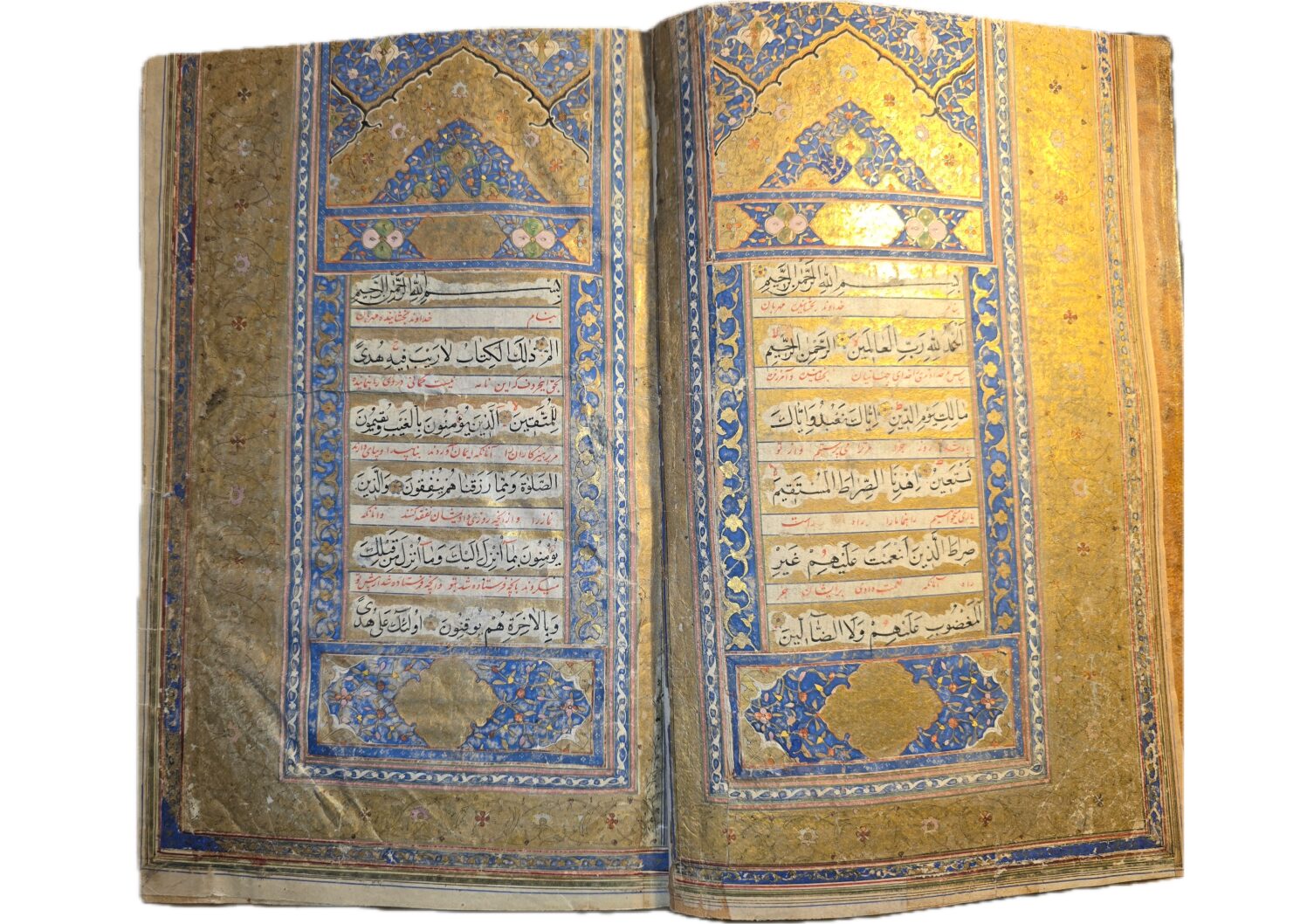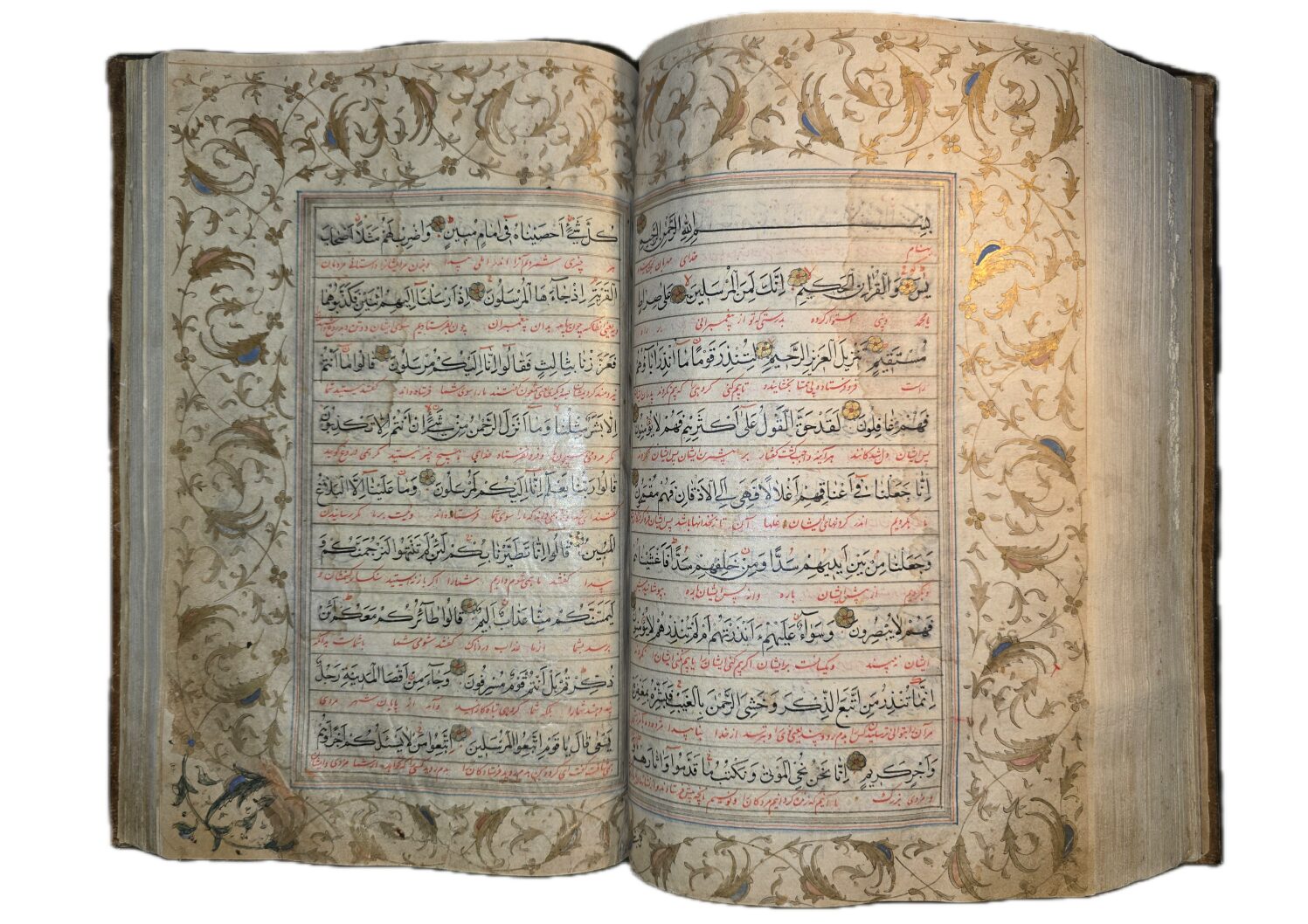 مصاحف مغول الهند المؤرخة والكاملة مع تفسير interlinear وبزخرفة أصلية وتجليد غير مستبدل تُعد من الفئات المطلوبة لدى جامعي المخطوطات والمؤسسات، وتُقيّم وفق الندرة، الحالة، مستوى التذهيب، ووضوح التاريخ.