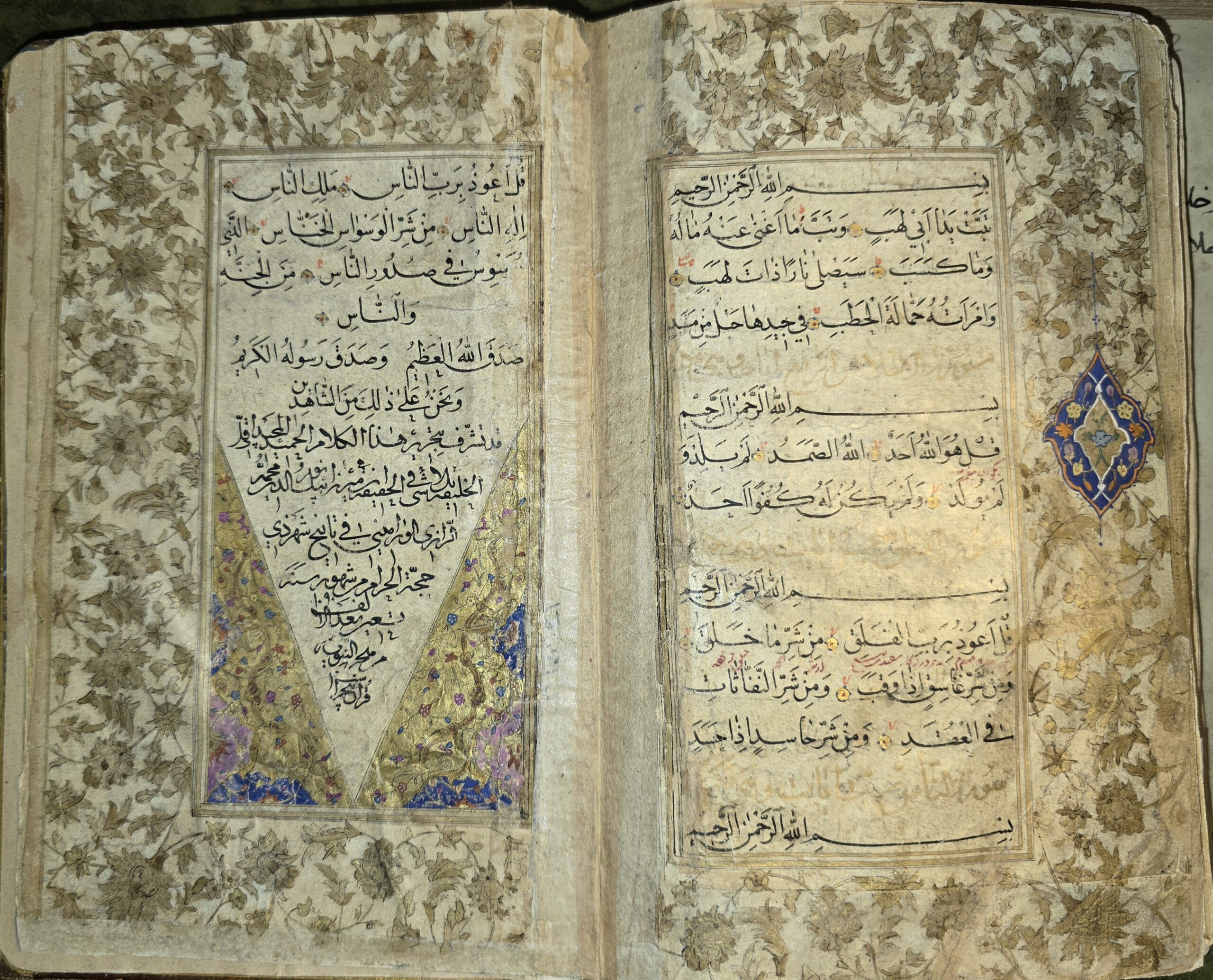 يقع في ٣٣٩ ورقة، بمقاس ٢١.٧ × ١٣.٢ سم، مزدان بزخارف مذهبة وصفحات افتتاحية غنية على الطراز الصفوي، مع فواصل سور ملوّنة وتجليد جلدي مزخرف. مثال أصيل ومؤرّخ على مصاحف إيران في القرن الحادي عشر الهجري، يتمتع بقيمة فنية وتاريخية عالية.